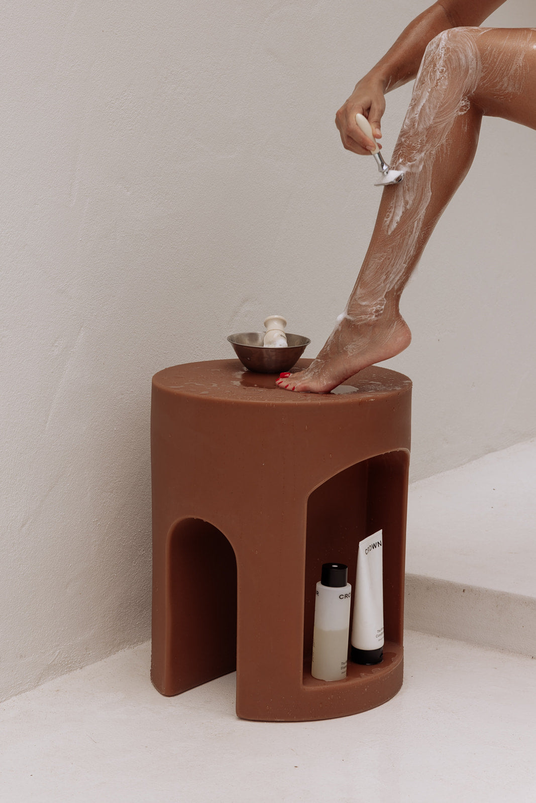 Watch as your daily essentials transform from scattered necessities into a curated collection - perfectly positioned for your rituals of perching on while bathing children, shaving legs, or as a footrest while exfoliating and moisturising. Each product within perfect reach, like artefacts in a museum of your making.