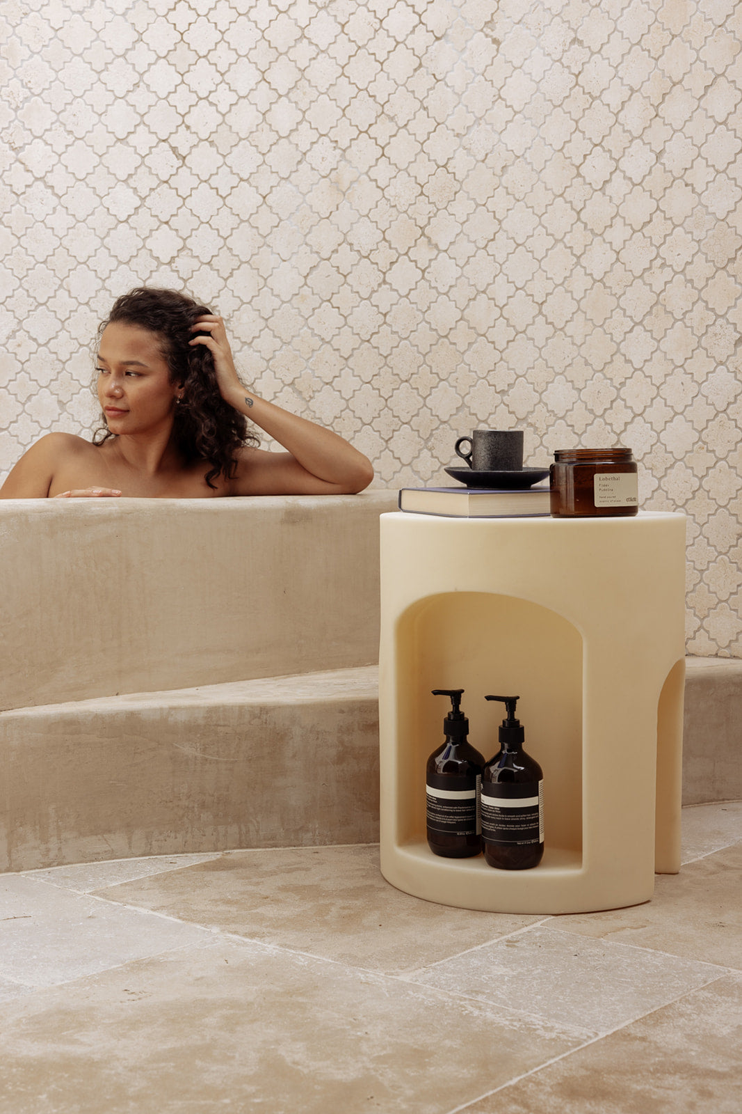 Watch as your daily essentials transform from scattered necessities into a curated collection - perfectly positioned for your rituals of perching on while bathing children, shaving legs, or as a footrest while exfoliating and moisturising. Each product within perfect reach, like artefacts in a museum of your making.